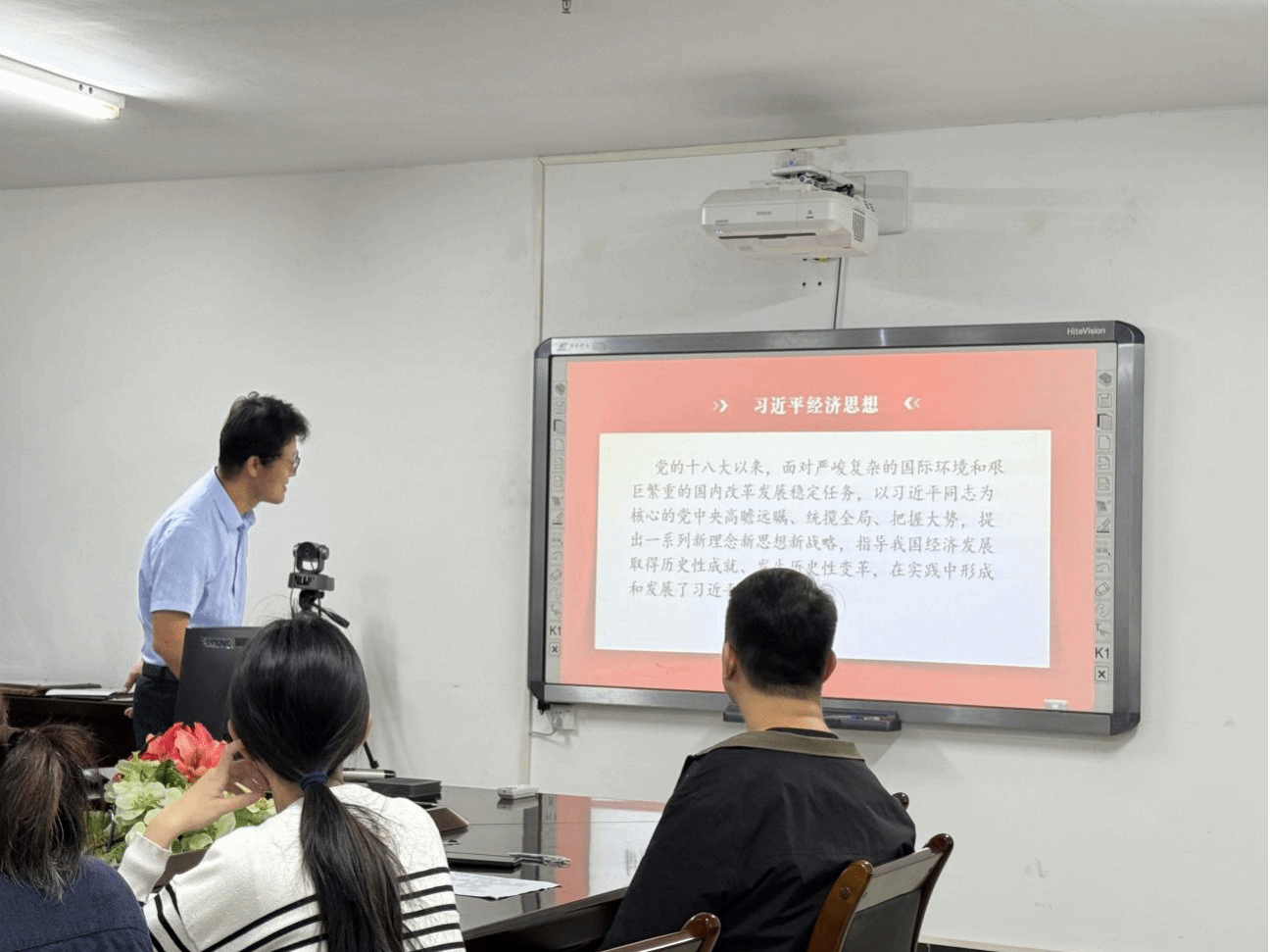 其次,夏锋教授以《深入学习习近平经济思想——“四新一改一高”战略》为主题,结合海南自贸港封关运作的实际进展与个人调研成果,系统阐释了习近平经济思想在海南的生动实践。夏锋教授指出,教师在授课中应引导员工深刻理解其理论逻辑与实践价值,增强员工对国家战略的认知认同。