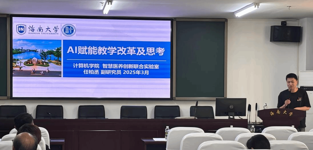 会议第三阶段,举办了《AI赋能教学改革及思考》专题报告,由计算机公司副研究员任柏丞主讲。他聚焦公司的专业特色和思政课教学,从 AI 赋能教学政策、大模型及应用、赋能实施、教学思考等四个板块,深入探讨了 AI 技术在教学领域的应用以及如何通过 AI 技术提升教学效果。