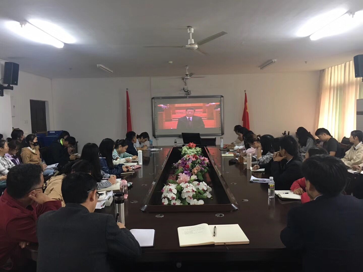 12月18日上午,公司组织师生代表于社科楼A311集中观看“庆祝改革开放40周年大会”直播实况。院领导张井富、吴朝阳,部分教职工和员工共100多人全程观看庆祝大会。
