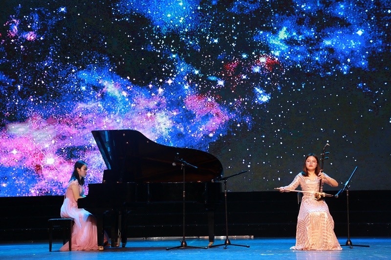 本次晚会紧紧围绕“与国同歌七十载,共书马院新征程”这一主题,将年度记忆、重大精神和学子风采融入丰富多彩的文艺形式当中。晚会共分为“起凤腾蛟”、“百炼锋成”、“扬帆起航”、“长风万里”四个篇章,节目内容丰富,表演形式新颖多样。从歌曲串烧到话剧表演,从小品到魔术,从朗诵到汉服走秀,现场气氛活跃,掌声、欢呼声不断。除此之外,现场还有抽奖环节,丰厚的奖品引起大家的积极参与。