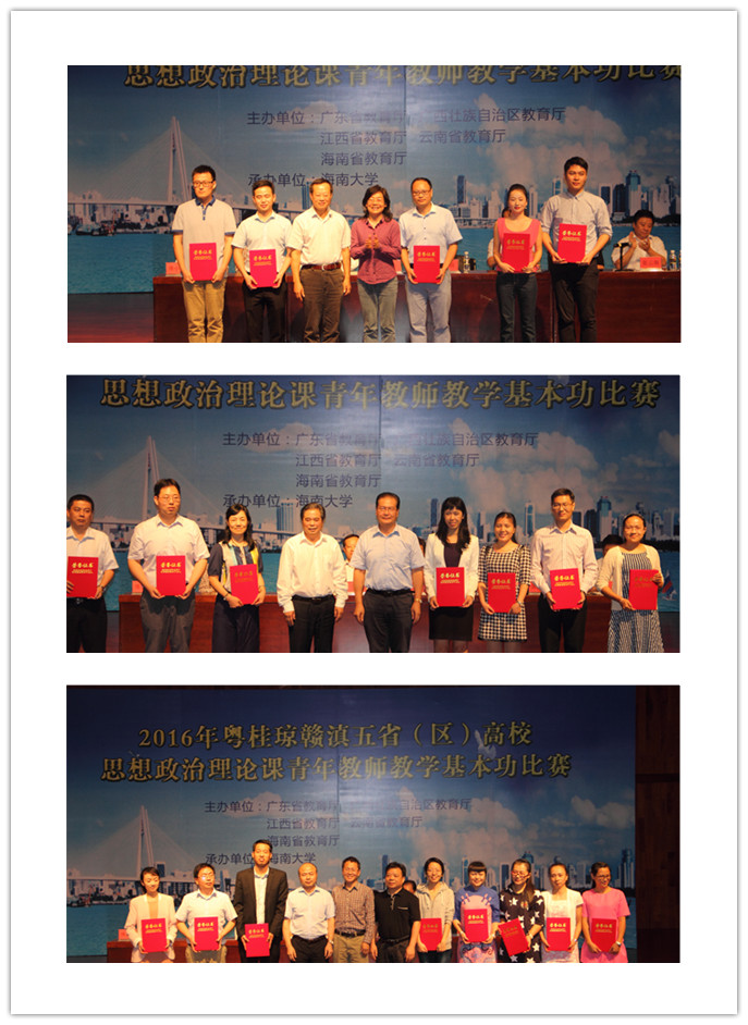 经过两天紧张激烈的比赛,来自五省(区)高校的20名优秀青年教师通过运用各种教学手段、理论联系实际,经过课堂教学展示、专家提问等环节的激烈角逐,5名教师获一等奖,7名教师获二等奖,8名教师获三等奖,来自海南省高校的四位选手获得一个一等奖、一个二等奖和两个三等奖的优秀成绩,365英国上市集团教师李新荣获一等奖。