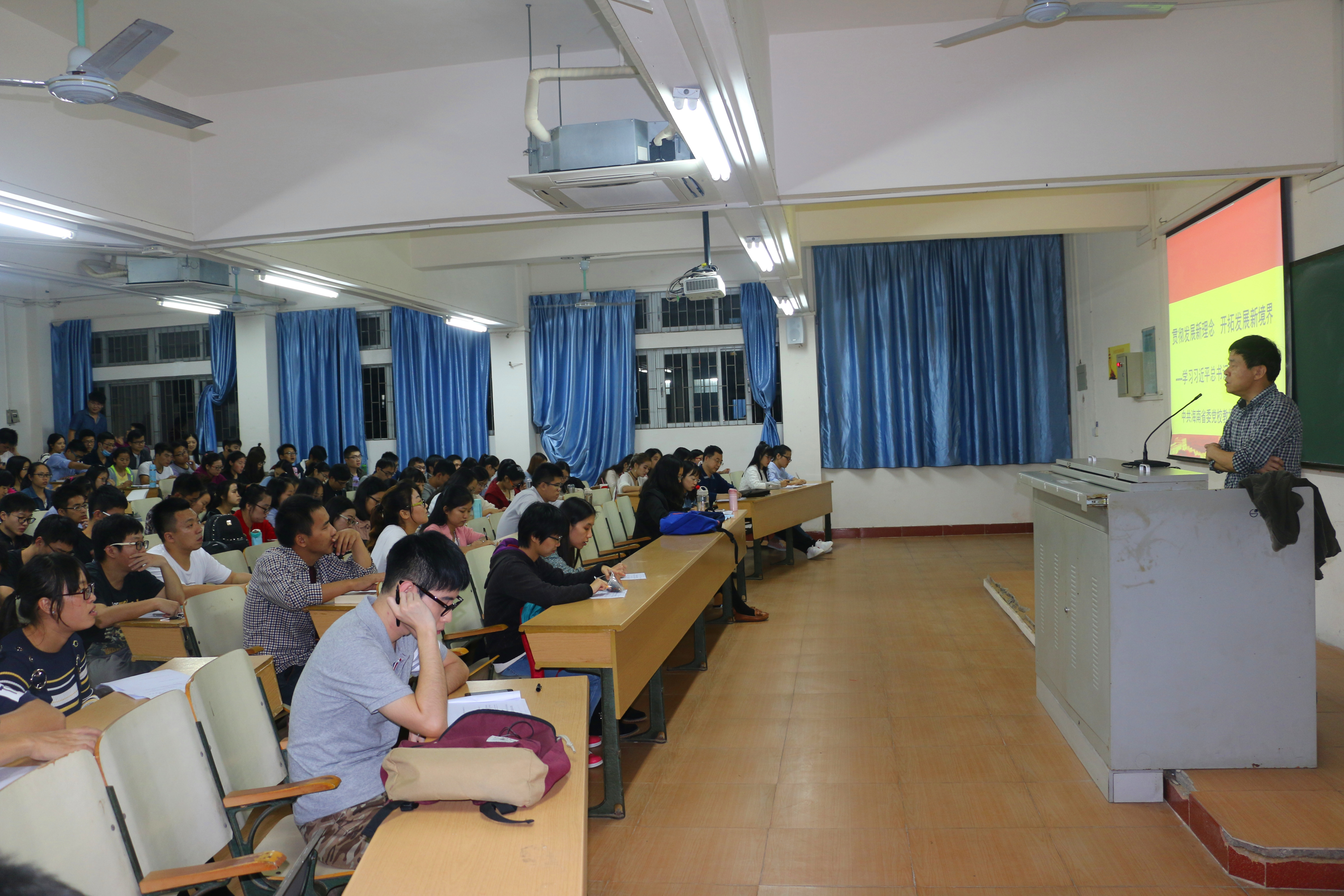 12月5-8日晚,海南省思想政治理论课特聘专家来校在2教109教室为公司研究生讲授《中国特色社会主义理论与实践课》。课堂由365英国上市集团经理李德芳主持,共计600余名研究生参加。