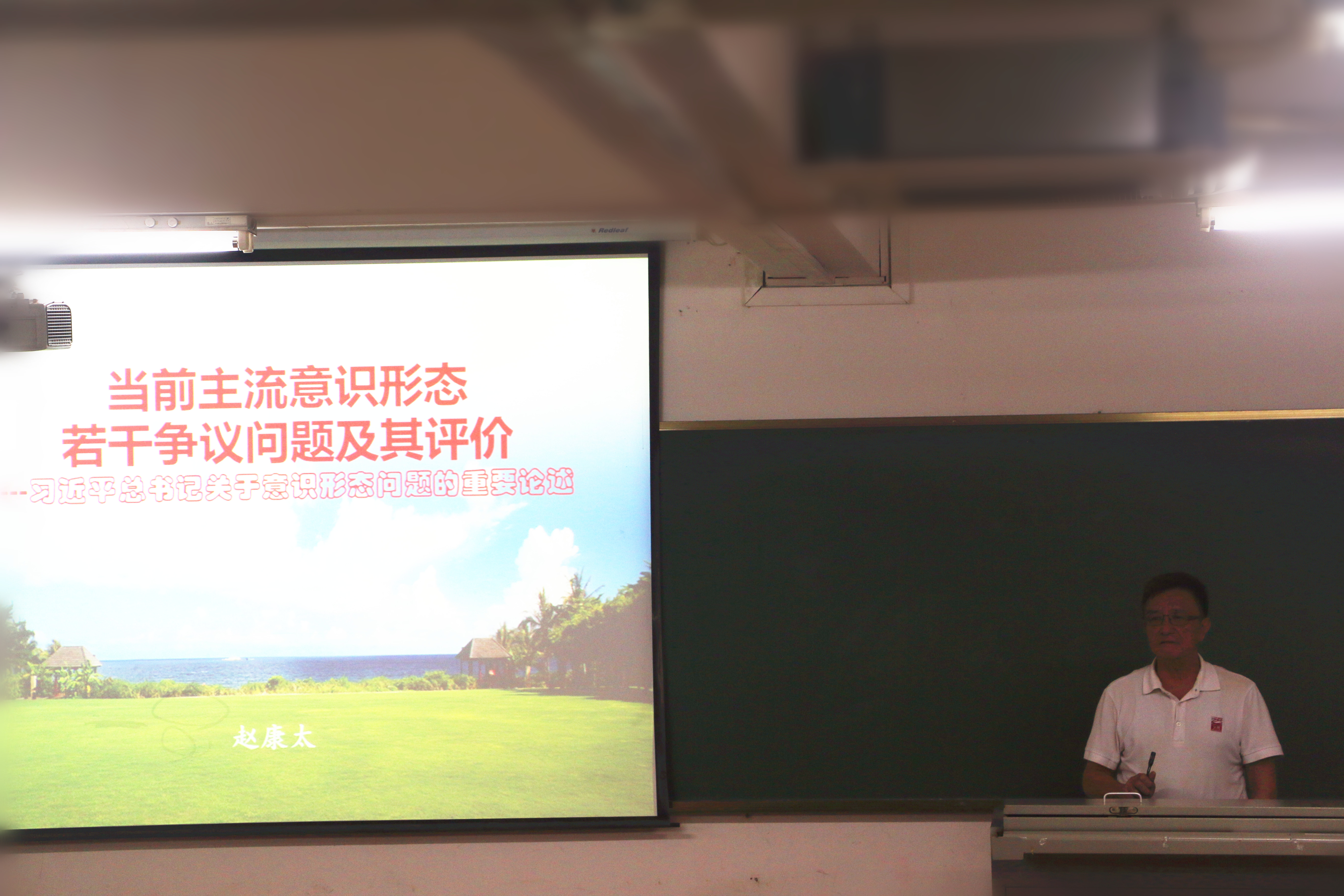 12月7日晚,海南省社科联原主席、社科院原经理赵康太教授以“当前主流意识形态若干争议问题及其评价——习近平总书记关于意识形态问题的重要论述”为题,结合古今中外事例,围绕“左右之争”,深入分析当前的主流意识之争及其社会影响,以及当前主流意识形态若干重大争议问题和原因,并对其进行基本评价。他表示,任何一种声音都有助于我们保持清醒头脑,但同时我们必须坚持中国共产党的领导,不能走老路,不能走邪路,要坚定不移走中国特色社会主义道路,在发展中解决问题,在全面深化改革中解决问题。