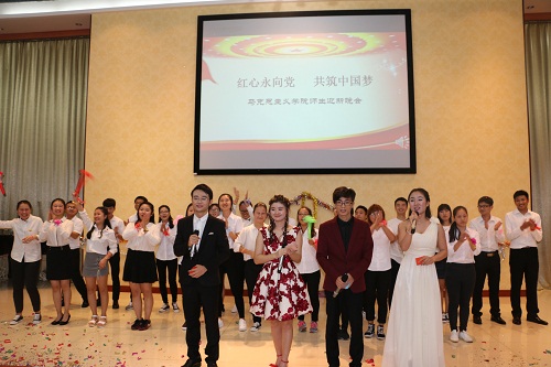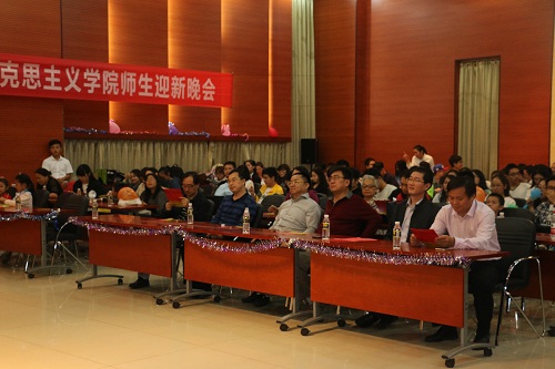 联欢晚会内容丰富,形式多样,由马院师生共同参与。开场舞蹈《Whistle》轰热了气氛,在现场引起热烈的反应;诗朗诵《我的南方和北方》唱响了对祖国的真挚的爱;《长征颂》是在我国长征正值80周年的日子里,对长征的纪念,更是对长征精神的再次学习。李俊老师的模仿秀《邓小平南方讲话》紧贴时政,充分体现马院特色,传达出深厚的内涵。再加上马院员工出色的歌曲舞蹈和小品表演,一次又一次把现场气氛推入高潮。现场还准备了200份礼物,抽奖环节,运用新媒体进行抽奖,方式新颖,书记段捷频和经理李德芳参与这一环节,为同学们抽奖,更是激起了大家参与的热情。晚会最后,一首《向快乐出发》为本次的迎新联欢晚会划上完美的句号。
