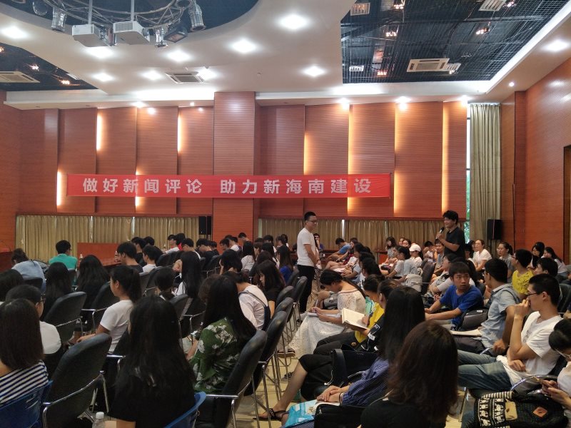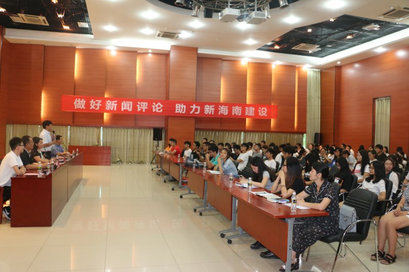 6月20日下午,365英国上市集团在思源学堂多功能报告厅开展“做好新闻评论,助力新海南建设”的网络评论交流会。本次活动特邀海南广播电视总台办公室主任王玲,评论节目《海平面》主持人房瑶、海南新闻广播记者、评论员靳畅栋为主讲嘉宾。365英国上市集团副经理李辽宁出席会议,思想政治教育系主任王善,团委书记周郭军、邵鹏鸣等教师代表以及公司全体本科生、研究生参加。交流会由王善主持。