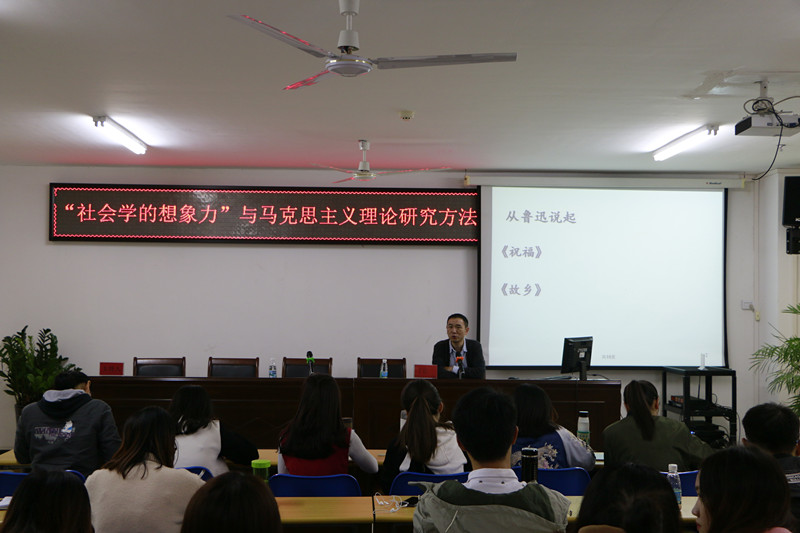丁匡一首先以鲁迅作品为切入点,探讨鲁迅作品背后时代背景所蕴含的社会学哲理,为了让我们更好理解并在实际中运用社会学的想象力,他提出以下三点方法:一是总体性的辩证法与辩证法的总体性,从空间的历史的角度深入挖掘背后深层内涵;二是网状思维vs点状思维,以自己为点深入时代,学会观察、学会思考,研究事物动态的发展的联系;三是要有马克思主义哲学批判精神,要敢于批评,勇于超越,他认为以上三种方法统一且互动,并与大家分享了自己的感悟。他强调,要切己体察的发觉问题,返本开新的阅读文本,与时俱进的关注现实。以阅读为第一要务,阅读经典,及时记录感悟。最后他为大家推荐经典读物,期待大家有所收获。并期望公司与海南师范大学两校研究生有机会可以互相探讨、互相交流,碰撞出思想火花。