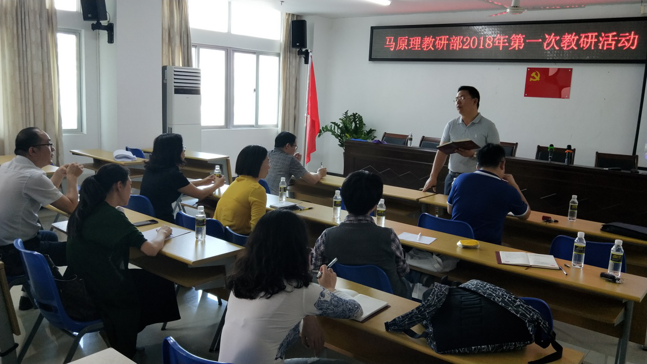 马克思主义基本原理概论教研部于4月3日下午3:00至5:00,在公司三楼开展了一次教研活动。此次教研活动共分两个阶段:第一阶段在A315教室开展原理教研部的教学科研研讨活动;第二阶段在A311会议室,与基础教研部联合开展新修订教材的情况说明活动。