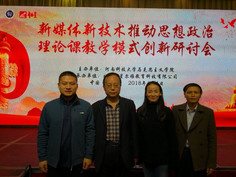 4月4日,“新媒体新技术推动思想政治理论课教学模式创新研讨会”在河南科技大学召开。来自中国人民大学、郑州大学等省内外高校200余位思政课专家学者参加了研讨会,公司王善副经理带领“纲要”教研部梁松斌、丁艳平、牛平川三位骨干教师参会。