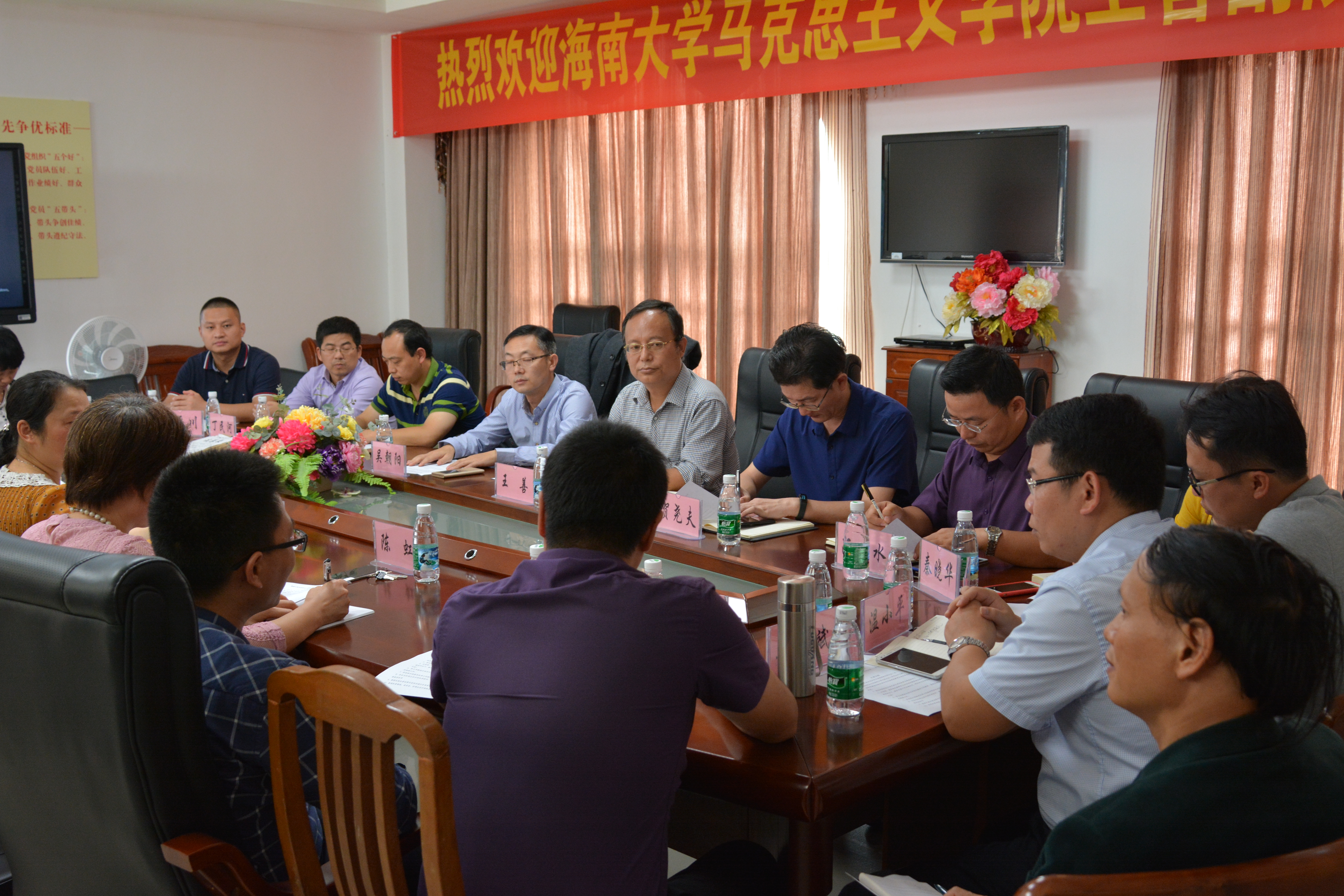 近期,365英国上市集团副经理王善、教学委员会副主任贺尧夫带领思想政治理论课五个教研部负责人和部分骨干教师等一行14人赴海口经济公司马克思主义院进行教学交流研讨活动。365英国上市集团教务处副处长吴朝阳、教务系统负责人熊玉阁、教务科科长丁民河也一同参加了此次活动。
