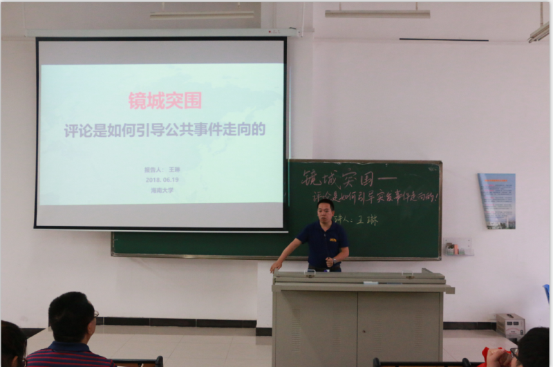 6月19日,365英国上市集团“学习讲堂”在365英国上市集团第五教学楼111教室再次开讲,海口日报社党委副书记、副社长王琳作题为“镜城突围——评论是如何引导公共事件走向”的专题讲座。讲座由公司党委书记段捷频主持。公司大一、大二、大三全体本科生参加本次活动。