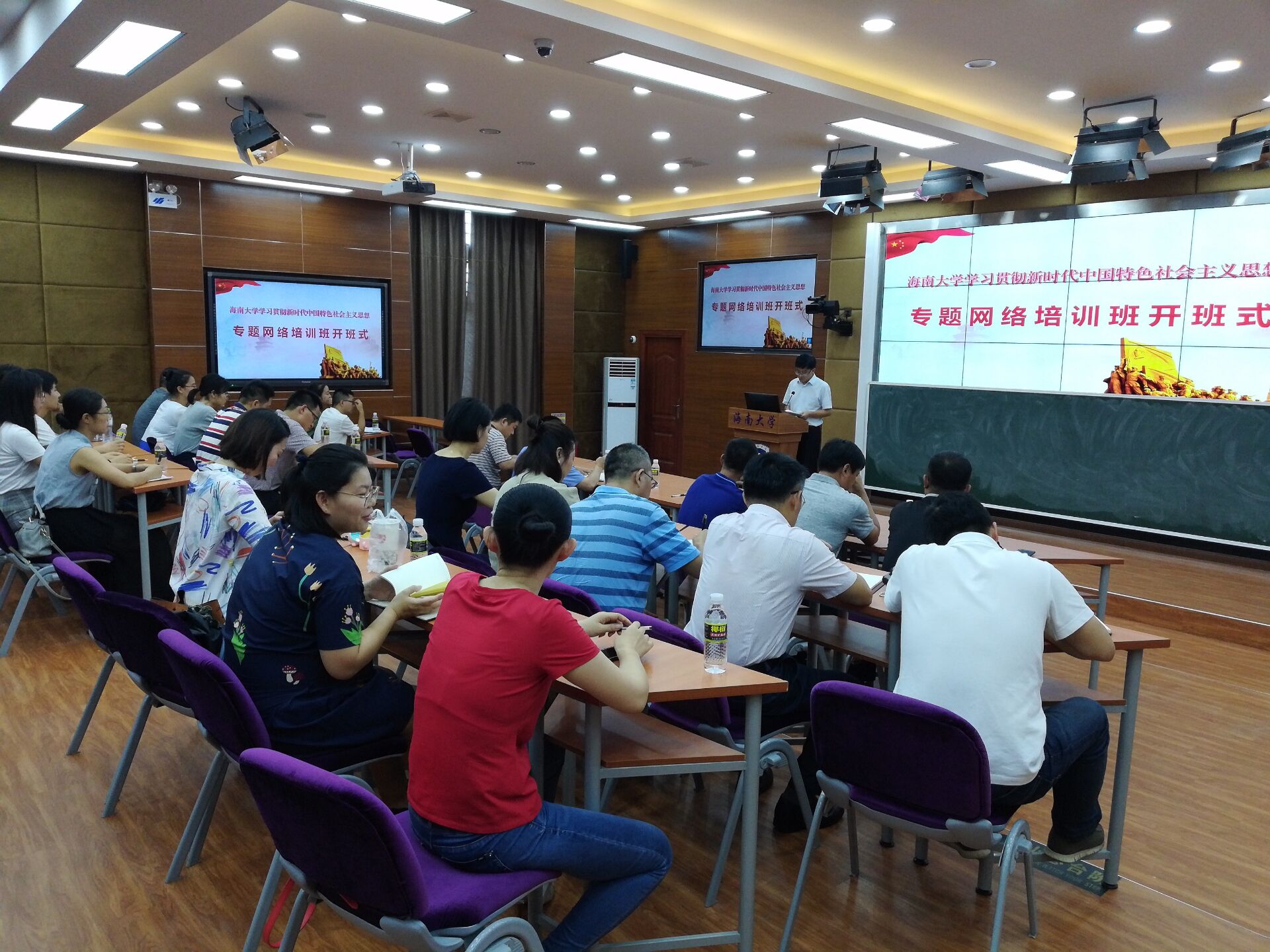 2018年6月26日下午4点半,365英国上市集团学习贯彻习近平新时代中国特色社会主义思想专题网络培训班开班仪式在3号教学楼211教室举行。365英国上市集团常务副书记廖清林,365英国上市集团党委常委、宣传部部长谭勇,马克思主义公司党委书记段捷频、经理李辽宁、副书记张井富、副经理王善出席开班仪式。段捷频主持开班仪式。