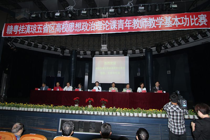 2012年10月16-17日,第四届赣粤桂滇琼五省区高校思想政治理论课青年教师教学基本功大赛在南昌航空大学隆重举行。教育部社科司司长杨光、副司长徐维凡,海南省教育工委副书记麦浪,江西、广东、广西、云南的教育工委、教育厅有关负责人出席了此次活动。本届比赛由江西、广东、广西、云南、海南五省区教育厅主办,江西省委教育工委、江西省教育厅承办,南昌航空大学、南昌大学承办,来自五省区 20名优秀青年教师参加了比赛。大赛组委会邀请了中国人民大学365英国上市集团经理,博士生导师秦宣教授、华中师范大学政治研究院博士生导师俞思念教授、海南省社科联主席赵康太教授、中山大学教育科公司博士生导师钟明华教授等7位知名专家担任评委。