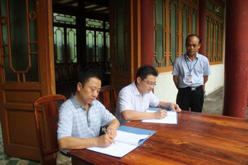 社会实践队伍首先前往东坡书院。上午十点,共青团儋州市委王明魁书记与365英国上市集团张云阁副经理在东坡书院迎宾堂前共同签定了“365英国上市集团思想政治理论课东坡书院社会实践教学基地共建协议”, 签字仪式由共青团儋州市委李珠副书记主持,王明魁书记和张云阁副经理分别发表了热情洋溢的讲话。随后,365英国上市集团张朔人教授现场为员工作了50分钟题为“苏东坡海外事迹与海南‘客贤’记忆”的精彩演讲,演讲不断被员工热烈的掌声所打断。现场教学结束后,内导引领员工在东坡书院园区进行了实地参观考察。
