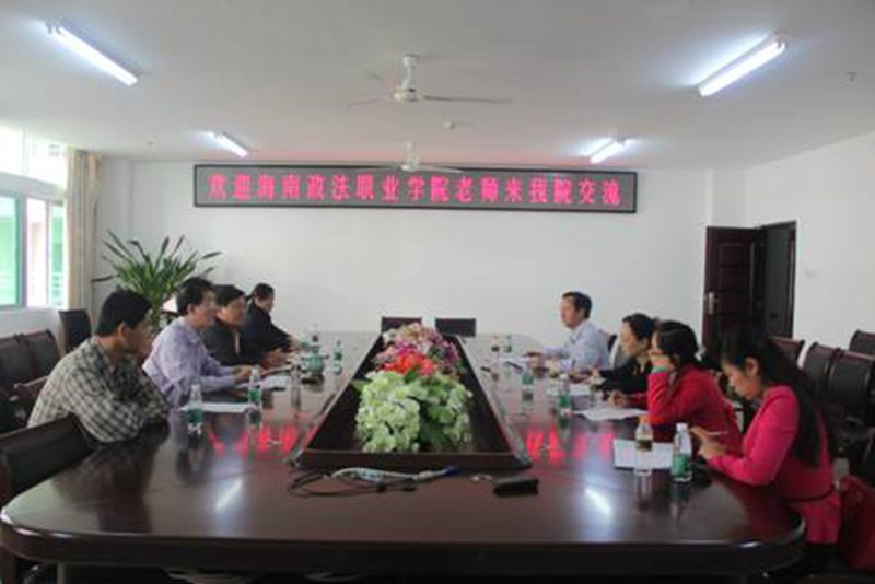 11月29海南政法职业公司社科部陈焕随副主任等一行多人,就当前思想政治理论课教学方法改革与公司教师进行交流。公司党委书记梁谋主持座谈交流会。
