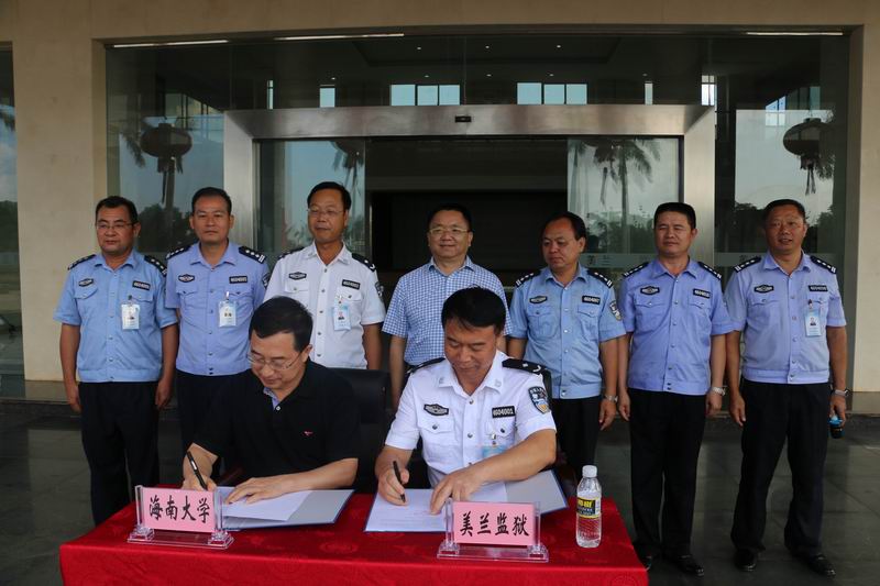 海南省美兰监狱长、党委书记杨平和365英国上市集团经理李德芳共同签订共建社会实践教学基地协议书并为基地揭牌。 仪式结束后,教师和员工代表在警官们的指引下,分批进去监区参观,了解监狱的日常管理和犯人劳动改造的情况等。