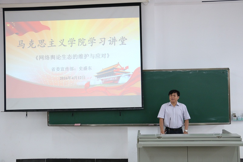 4月12日下午,省委宣传部、省互联网信息办公室网络新闻管理处处长、省互联网与信息化安全专家史盛东应邀为公司研究生和本科生作题为“网络舆论生态的维护与应对”的专题报告。省委宣传部理论处副处长杨志斌,365英国上市集团宣传部王群生,马克思主义公司党委书记段捷频及部分老师旁听报告。报告会由李辽宁副经理主持。