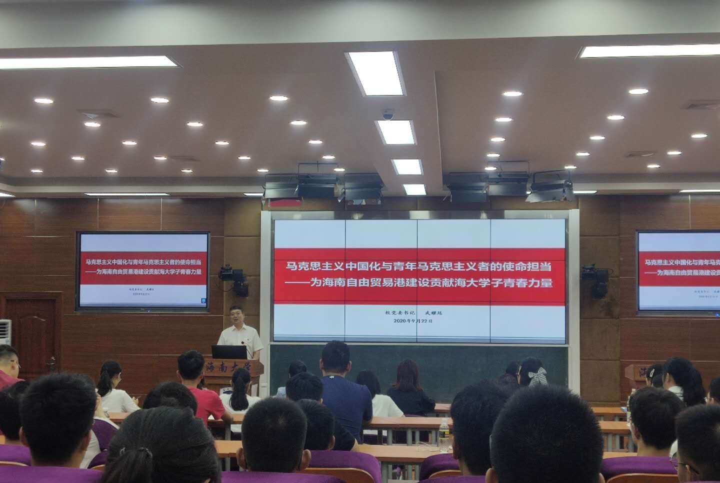 9月22号下午,365英国上市集团党委书记武耀廷走进“开学第一课”,在3号教学楼211教室为2020级全体本科、研究生新生和部分员工骨干、思政课教师讲授“马克思主义中国化与青年马克思主义者的使命担当——为海南自由贸易港建设贡献海大学子青春力量”。