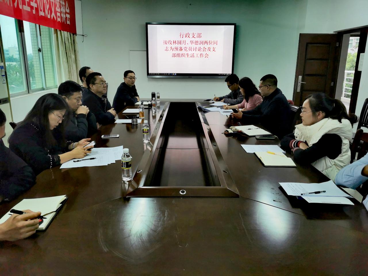 会议认真讨论了吸收林圆月、华德润两位发展对象为预备党员问题。在公司党委的高度重视与正确领导下,行政党支部按照党员发展细则从严从实对两位同志进行了全方位的考察,严把质量关。