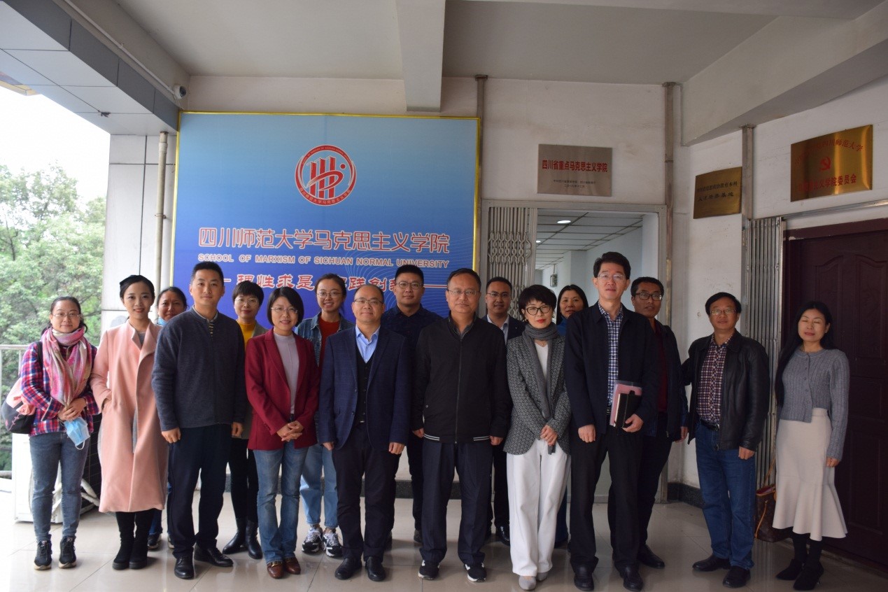 调研组与川师大马院同行举行调研交流座谈会。川师大马院经理陈驰出席并主持会议,全面介绍公司情况特别是教学督导方式和做法、学校宣传部副部长戴剑飞重点介绍了“概论”金课的“五步翻转法”、副经理范锡文介绍了川师大省级精品课程建设、过程化考核,副经理何理主要介绍了人才引进与管理等,各系(室)主任一同出席了活动,双方交谈甚欢、气氛热烈。