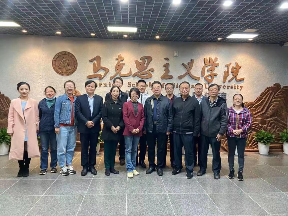 调研组与四川大学马院同行进行座谈交流。座谈会由川大李栓久书记主持,双方就金课建设、科研推进、教学督导等进行了交流,“中国化”正副主任羊绍武、李红重点介绍了集体备课、“双带头人”的“四个结合”具体做法现机制建设等,李辽宁教授随同出席会议,双方交流热烈、互动频频,效果突出。