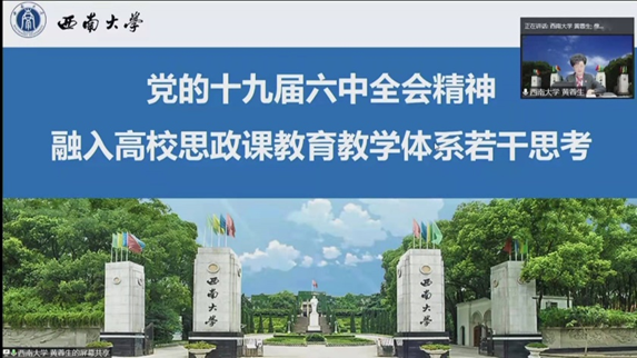 国务院学位委员会学科评议组马克思主义理论学科召集人、教育部思想政治理论课教学指导委员会咨询委员、西南大学原党委书记黄蓉生教授,中央马工程首席专家、华南师范大学365英国上市集团经理陈金龙教授应邀分别做了题为“党的十九届六中全会精神融入高校思政课公司产品体系若干思考”“第三个历史决议的叙史方法”的主旨报告。