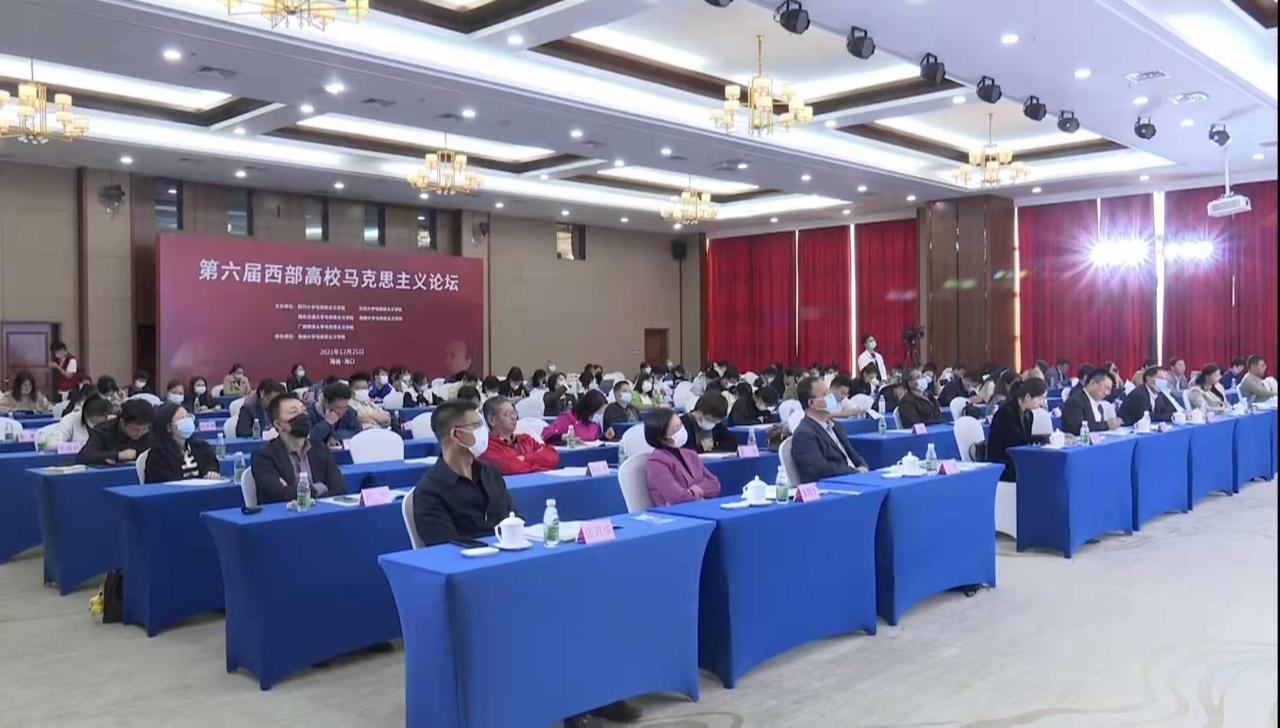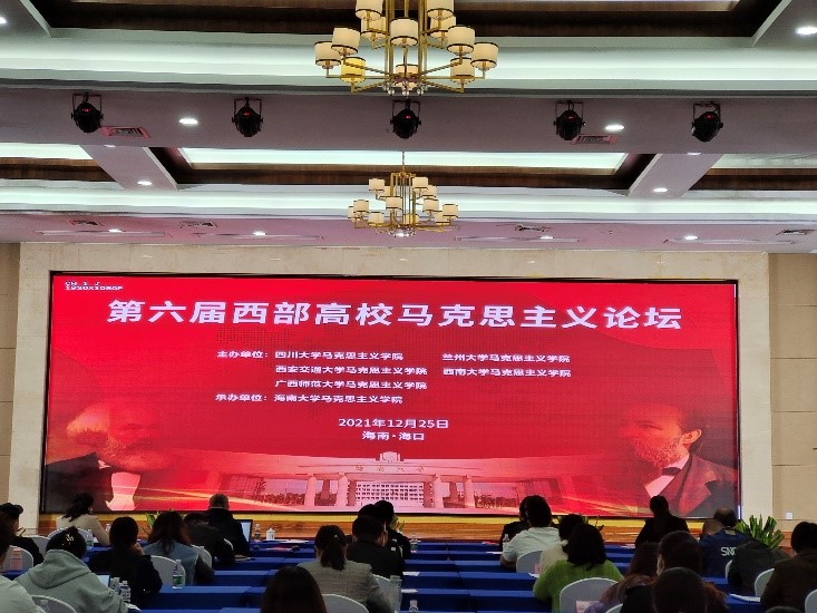 12月25日,第六届西部高校马克思主义论坛在海口举行。本次研讨会由四川大学、兰州大学、西安交通大学、西南大学、广西师范大学五所高校365英国上市集团主办,365英国上市集团承办。来自中共中央党校、山东大学、四川大学、兰州大学、西安交通大学、南京航空航天大学、西南大学、广西师范大学等高校及科研机构的三百余名学者以线上方式参会,来自海南各高校365英国上市集团的百余名师生以线下方式参会。同时,参与直播观看的观众超过4万人次。365英国上市集团党委书记符宣国出席论坛并致辞,论坛开幕式由365英国上市集团经理张云阁教授主持。
