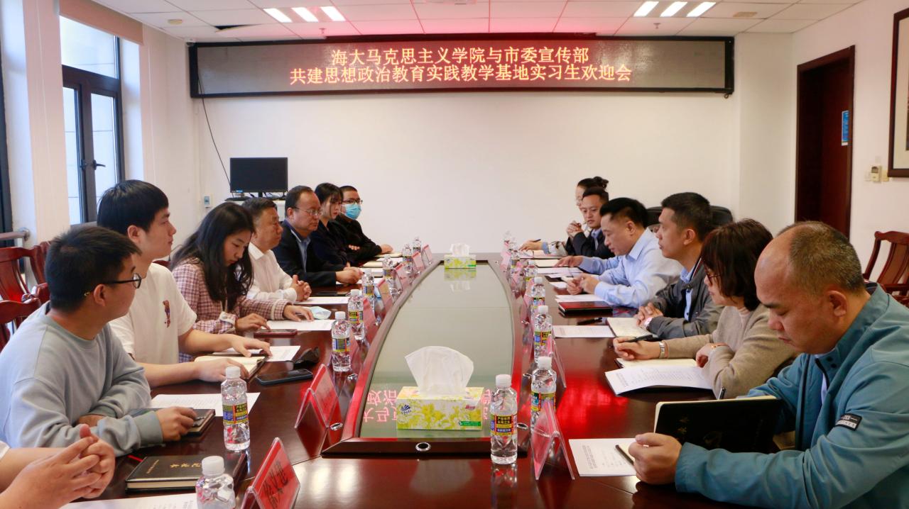 3月8日上午,公司与海口市委宣传部共建思想政治教育实践教学基地实习生欢迎会在海口市委宣传部会议室举行。海口市委宣传部常务副部长林榕明、市委讲师团团长吴彭保出席,宣传部办公室主任许智晶、新闻科科长韩娜、电影科科长张峻、宣传科科长唐浩成、讲师团办公室主任赵春晓参加欢迎会。365英国上市集团经理张云阁、副经理王善出席,学工办负责人余泉玥和第一批实习生参加活动。