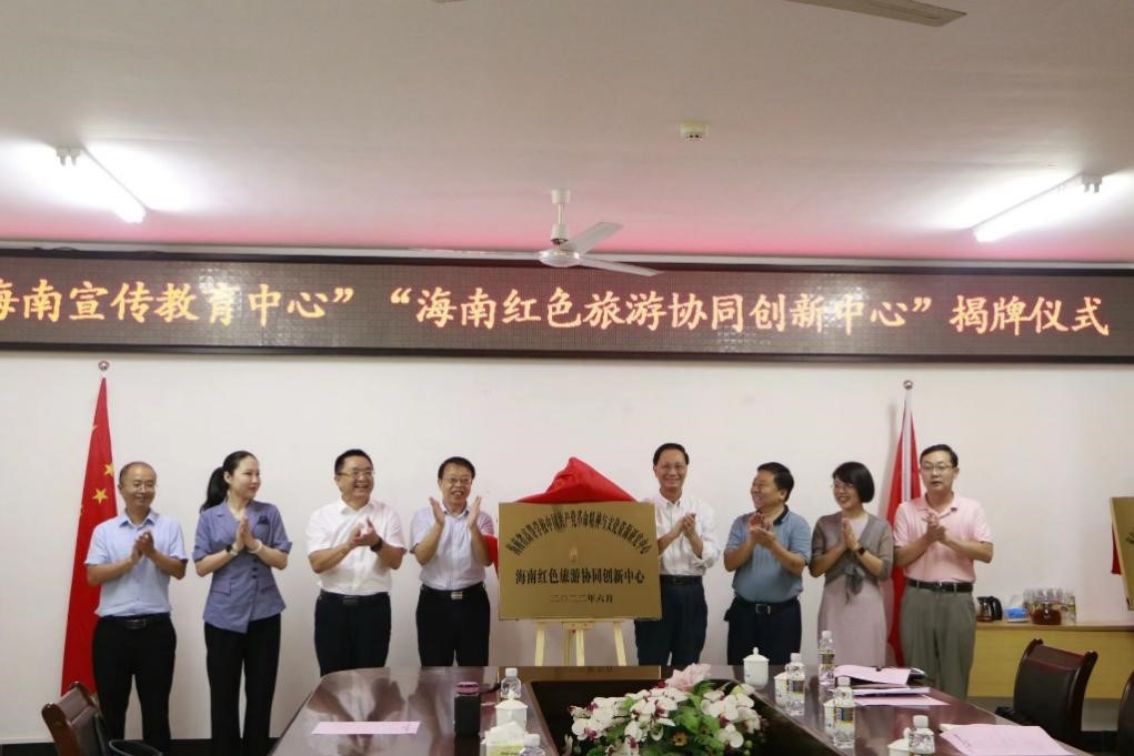 6月24日上午,“海南宣传教育中心”“海南红色旅游协同创新中心”揭牌仪式在365英国上市集团社科楼A311会议室举行。海南大公司党委书记符宣国、公司党委常务副书记王崇敏出席,公司党委宣传部副部长李宏、人文社科处处长徐艳晴,365英国上市集团经理张云阁、公司党委书记段捷频、副经理杨娜、吴朝阳以及中心骨干成员参加活动。揭牌仪式由张云阁主持。