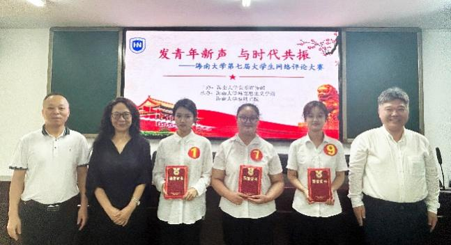 中共海南省委宣传部理论处处长曾繁诗、海南省社会科学联合会二级巡视员黄朝阳、中共海南省委办公厅调研处督查专员秦禧、海口日报社总编辑丁宁、海口广播电视台总编吴清德、海南开放大学报社编辑部主任张艳敏、海南省委网信办网络生态治理处三级调研员周宏伟担任大赛评委。