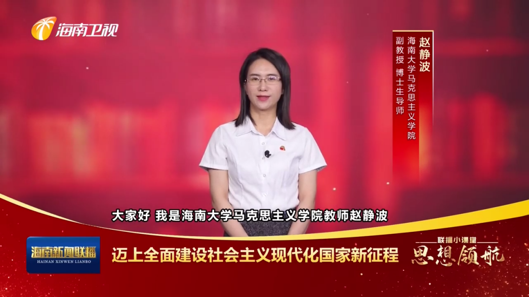 自深入开展学习贯彻习近平新时代中国特色社会主义思想主题教育以来,马克思主义公司党委高度重视,充分发挥马克思主义理论专业优势及全省理论宣讲先进集体的影响力,精心组织并挑选王一闳、刘涵、赵静波、龙借琼等四位政治素质过硬、理论水平高的青年党员思政课教师,与海南广播电视总台合作共同录制“联播小课堂”,成功于2023年4月24日、4月30日、5月1日、5月2日的《海南新闻联播》中分别播出《在有机融合 一体推进中扎实开展主题教育》、《坚持以人民为中心的发展思想》、《全面深化改革开放》、《迈上全面建设社会主义现代化国家新征程》四个专题视频节目,以此持续强化社会面宣传,积极营造浓厚的学习宣传“主题教育”的社会氛围。