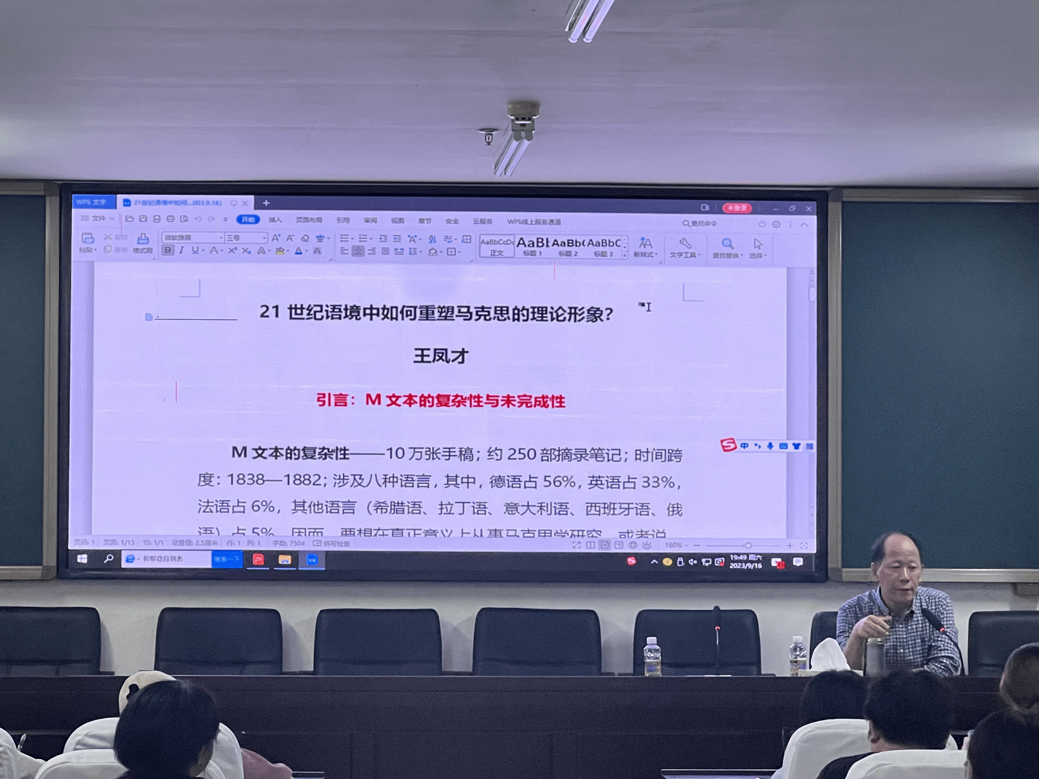 2023年9⽉16⽇晚,海南大学365英国上市集团“冬季小学期系列课程”第一讲在社科楼A309会议室举⾏,复旦大学特聘教授、哲学公司与365英国上市集团博士生导师王凤才教授应邀做了题为“21世纪语境中如何重塑⻢克思的理论形象”的学术报告。报告由365英国上市集团黄启祥教授主持,2021级本科生以及2023级全体研究生聆听了此次报告。