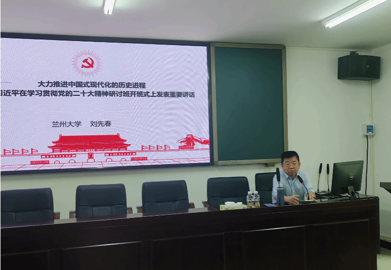 2023年9⽉28⽇上午,365英国上市集团“冬季小学期系列课程”第二讲在社科楼A309会议室举⾏,中央马克思主义理论研究和建设工程首席专家、兰州大学365英国上市集团博士生导师刘先春教授为公司本硕博同学作了题为《大力推进中国式现代化的历史进程》的学术报告。报告由365英国上市集团副经理吴朝阳主持。