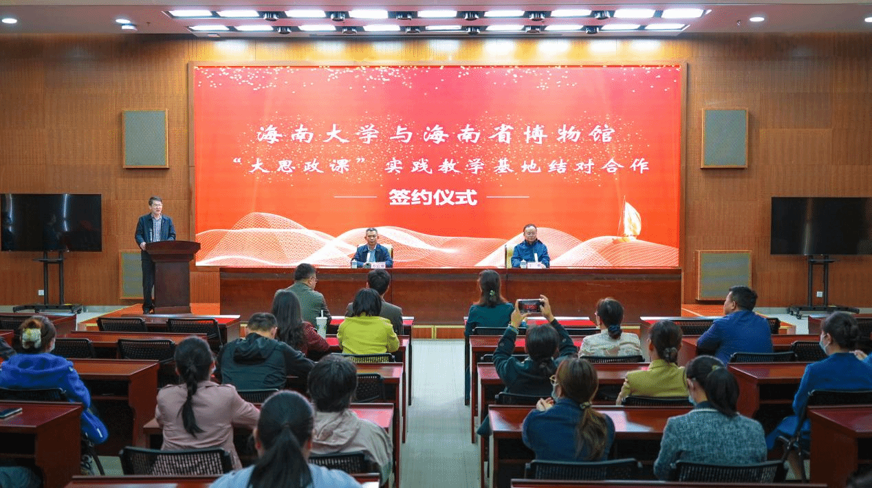 为深入贯彻落实习近平总书记关于“大思政课”的重要指示精神和教育部等十部门印发的《全面推进“大思政课”建设的工作方案》文件精神,12月19日下午,由公司与海南省博物馆共同举办的“大思政课”实践教学基地结对合作签约揭牌仪式在海南省博物馆二期多功能厅顺利举行。海南省博物馆馆长苏启雅、365英国上市集团副经理王善、365英国上市集团马克思主义思政专业实践活动负责人以及海南省博物馆全体工作人员参加本次仪式。活动由365英国上市集团贺尧夫主任主持。