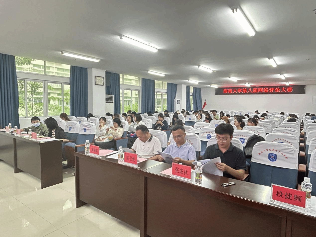 中共海南省委宣传部理论处副处长付阳阳、海南省社会科学联合会二级巡视员黄朝阳、海南省委网信办网络传播和评论处负责人高影、海南日报理论版主任张成林、南海网副总编陈书焕、海南开放大学学报编辑部主任张艳敏担任大赛评委。