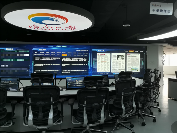 采访团一行首先来到海南省融媒体中心,长卷般的屏幕在墙上铺开,“选题展示”“报纸大样”等板块同时呈现;“海南热点”“海南舆情”等板块滚动更新。海南日报社政文部金昌波主任介绍,每个工作日,海南日报报业集团采编人员都会利用全媒体指挥中心召开采前会。这一系统经过一年多的调适和完善,已经成为该集团调度各下属媒体、联动前后方采编人员的神经中枢。