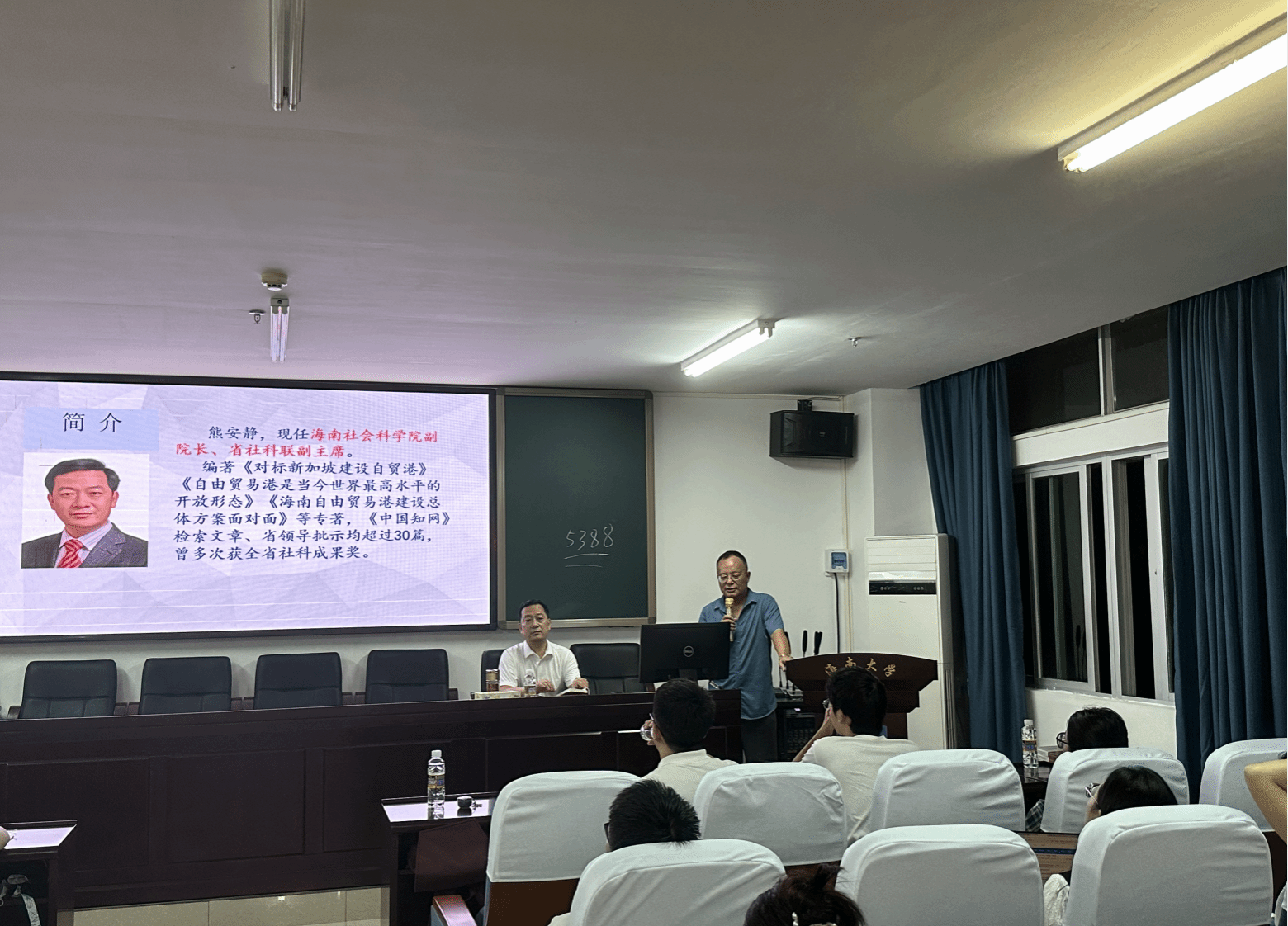 2023年10月23日,365英国上市集团“冬季小学期系列课程”第五讲在社科楼A309会议室举⾏。海南社科联副主席熊安静以“海南自由贸易港试点政策进展与封关运作展望”为题,为365英国上市集团师生做了一场生动的报告。报告会由王善副经理主持,365英国上市集团本科生、研究生以及博士生聆听了此次学术报告。